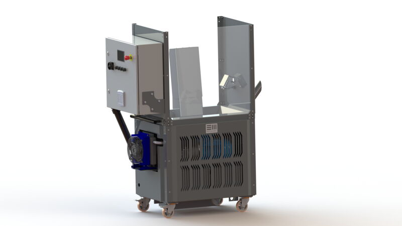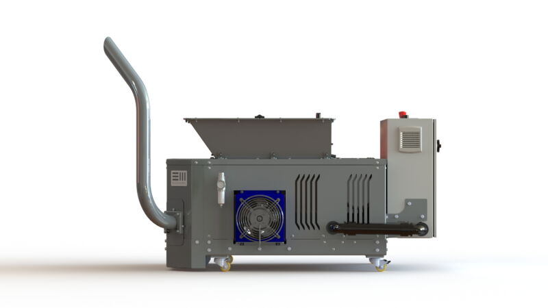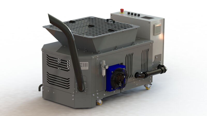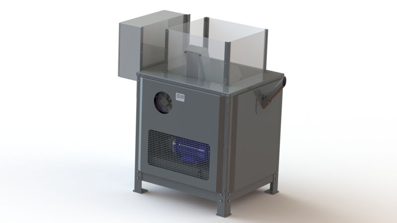 Für eine hohe Verfügbarkeit sind die Brikettierpressen von EIDOS mit Vertikalschredder und Festteilaussortierung erhältlich. Als Kombi-Variante können die Geräte aufeinandergesetzt und direkt unter die Späneförderer gestellt werden. In die Presskammer gelangen ausschließlich „Chip-Späne max. 1 cm²” und keine größeren Festteile wie Stangenenden oder abgebrochene Werkzeuge. Die EIDOS EVTM-565-LB ist eine der kompaktesten Brikettierpressen auf dem Markt.