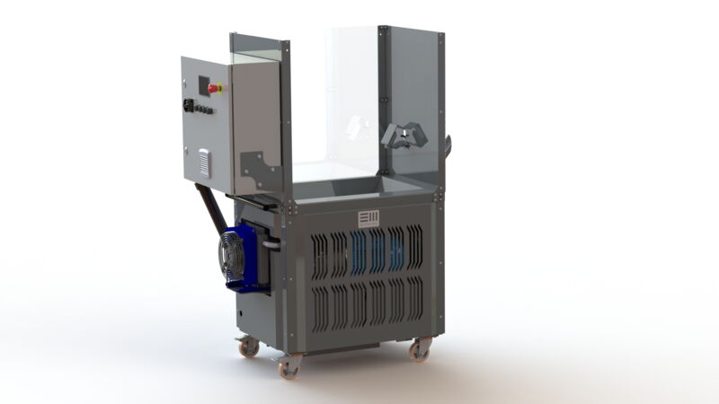 Darüber hinaus ist der Rahmen auf Rollen montiert und mit einem Griff ausgestattet, um ein einfaches Bewegen innerhalb der Werkstatt zu den Produktionsorten zu ermöglichen.