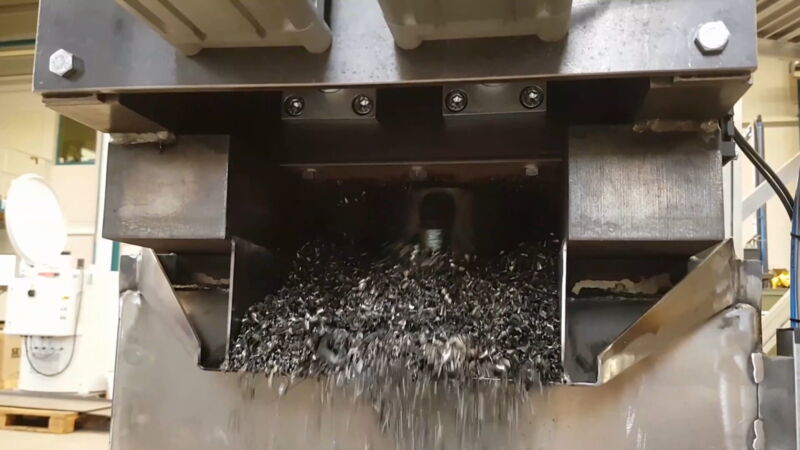Um in der Spänemulde Platz zu sparen, werden sperrige Woll- und Spiralspäne geschreddert.