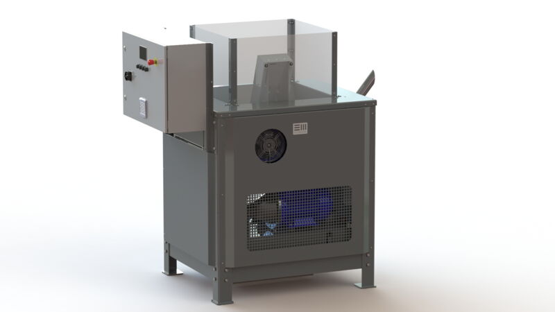 Für eine hohe Verfügbarkeit sind die Brikettierpressen von EIDOS mit Vertikalschredder und Festteilaussortierung erhältlich. Als Kombi-Variante können die Geräte aufeinandergesetzt und direkt unter die Späneförderer gestellt werden. In die Presskammer gelangen ausschließlich „Chip-Späne max. 1 cm²” und keine größeren Festteile wie Stangenenden oder abgebrochene Werkzeuge. Die EIDOS EVTM-565-LB ist eine der kompaktesten Brikettierpressen auf dem Markt.